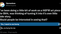 Hey y'all. If you follow me on twitter, you may have noticed that I posted a poll yesterday asking about NSFW content. Here are the results: https://twitter.com/Harmoyena/status/1562513338080235521 Th...